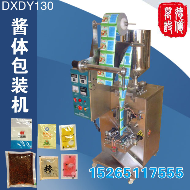 1.本機(jī)采用中文液晶顯示,操作指示一目了然。菜單化的操作界面,極奇簡(jiǎn)單方便。 2.采用CPU集中控制系統(tǒng),智能光電定位,抗干擾強(qiáng),連續(xù)兩袋光標(biāo)異常即停機(jī)報(bào)警。 3.制袋系統(tǒng)采用同步進(jìn)電機(jī)細(xì)分技術(shù),制袋精度高,誤差小于1毫米;4.全自動(dòng)測(cè)量包裝袋的長(zhǎng)度,無(wú)需人工參與包裝膜的長(zhǎng)度設(shè)定(指帶有色標(biāo)的包材)。 5.智能型溫控儀雙路控制橫、縱封模具的溫度,雙轉(zhuǎn)動(dòng)臂封合,熱合效果更佳。 6.采用全不銹鋼泵體,柱塞泵計(jì)量,在額定計(jì)量范圍內(nèi)可任意調(diào)節(jié)??蓪?duì)液體及粘稠體的自動(dòng)充填,操作簡(jiǎn)單方便。 7.最新設(shè)計(jì)的一體化電動(dòng)切刀,可N袋切斷,可避免卡袋現(xiàn)象,切刀耐用,可在機(jī)器運(yùn)行時(shí) 調(diào)整切刀位置,從而方便了用戶(hù)的操作。8.此機(jī)型可自動(dòng)完成制袋、計(jì)量、充填、封合、切斷、打印批號(hào)等功能。操作簡(jiǎn)單、制袋精確、性能穩(wěn)定可靠。本機(jī)外形美觀大方,全不銹鋼結(jié)構(gòu),符合食品和醫(yī)藥包裝的衛(wèi)生要求。 用途:適用于食品調(diào)料、飲料、醫(yī)藥、日化等行業(yè)的液體膏狀物料。如醬、油包、蜂蜜、洗發(fā)膏、化妝品等物料包裝。 包裝材料:聚酯 / 鍍鋁 / 聚乙烯、聚酯 / 聚乙烯、 BOPP 薄膜、尼龍復(fù)合薄膜等可熱封的復(fù)合包裝材料。 型號(hào) DXDC--Y60 DXDC--Y130 包裝速度(袋/分) 40--60 30--50 計(jì)量范圍 ml 1--50 50--200 制袋尺寸 mm 長(zhǎng) 40--120 40--200 寬 60--240 60--300 外型尺寸 mm 625*750*1550 725*780*1755 功率 1000W 1000W 電源電壓 220v/380v 22OV 凈重 270公斤 320公斤 計(jì)量方式【旋塞泵計(jì)量】誤差正負(fù)2%